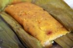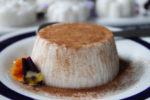 The main dish is usually roast pork served along with arroz (rice) con gandules (pigeon peas), plátanos (fried green bananas), and pastels. Pasteles are made using green bananas as the dough which is then filled with meat either (beef) or (pork) and is wrapped in banana tree leaves. A roast pig on a spit, called “lechón asao,” is a traditional all day long event. Holiday desserts include “arroz con dulce” (rice cooked with spices, sugar, milk, and coconut milk) and “tembleque” (a custard made with cornstarch, sugar, and coconut milk). They are eaten cold, when its consistency becomes solid. Flan is a rich custard dessert with a layer of soft caramel on top. Coquito is the traditional holiday beverage and is made using coconut milk and rum.